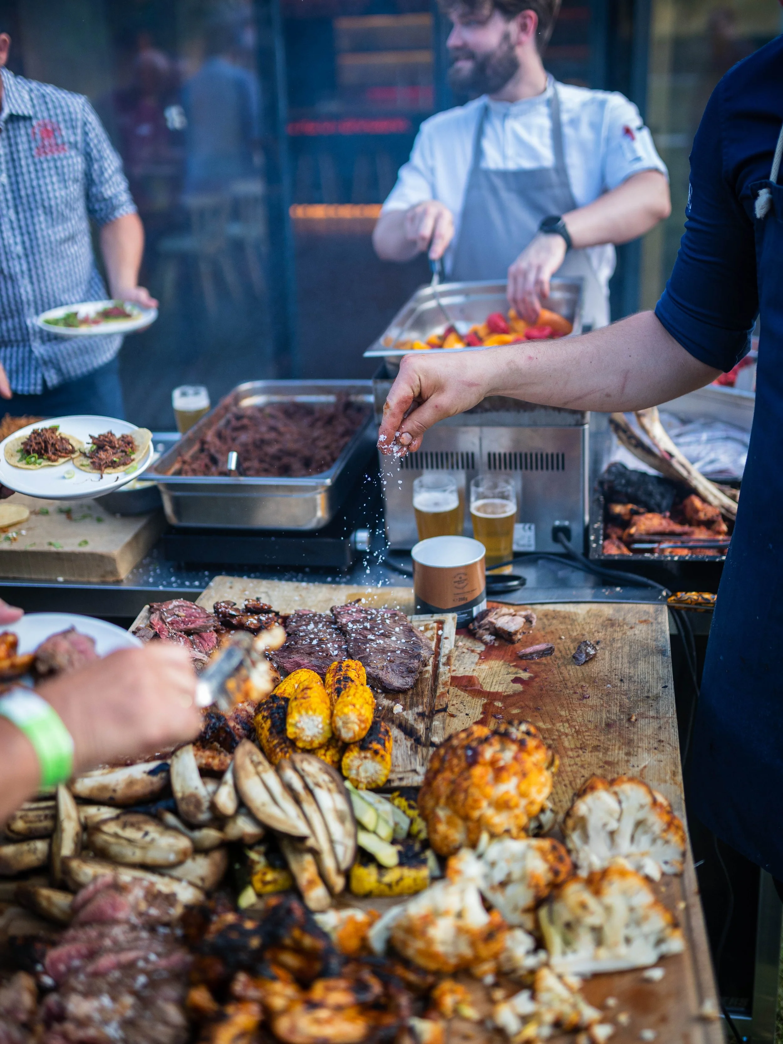 Warmes Brauerbuffet mit Grillplatte, Grillgemüse, Pommes (vegetarische Alternative möglich)